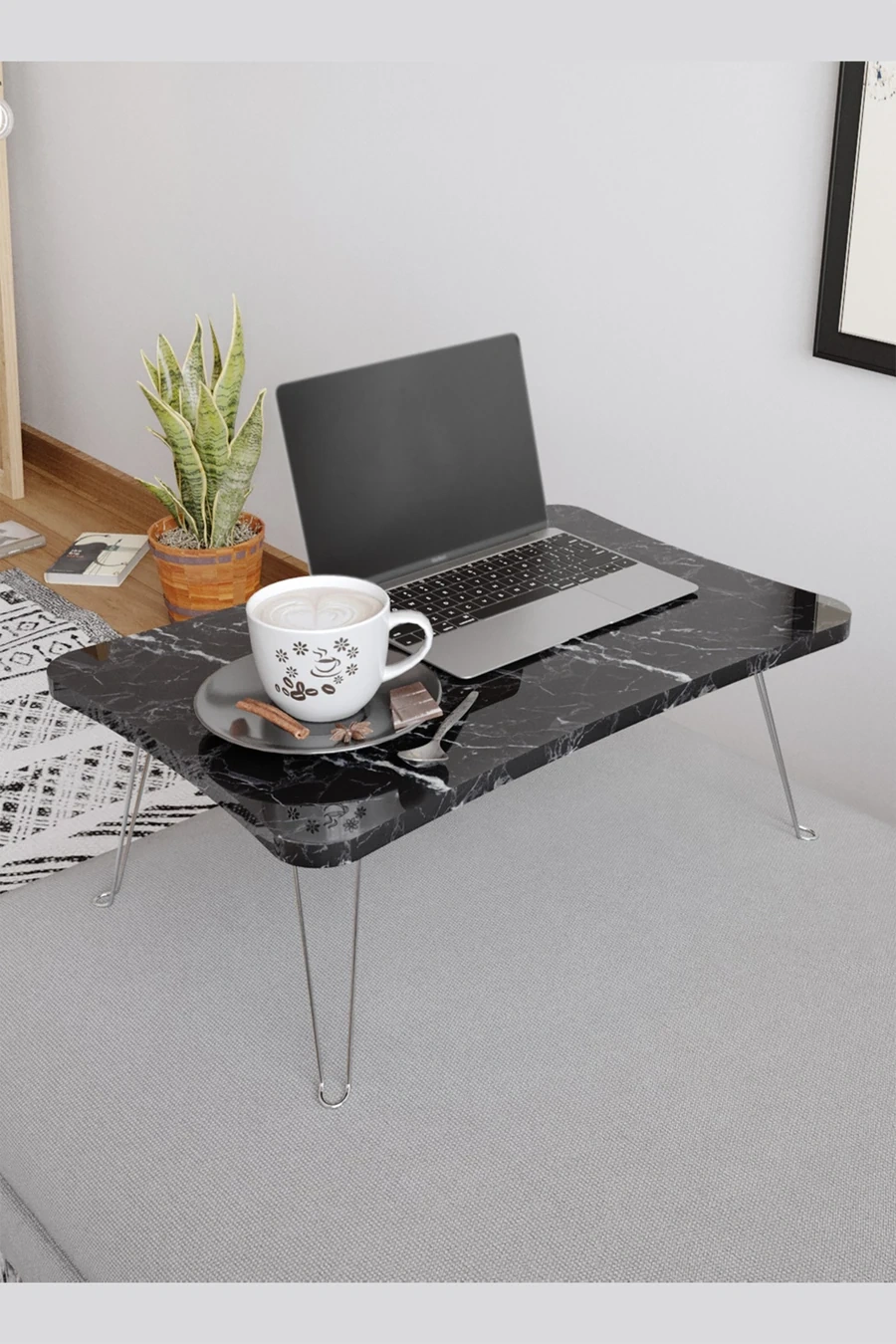 Taşınabilir Katlanır Yatak Koltuk Üstü Hasta Servis Masası Laptop Bilgisayar Çalışma Sehpası - Siyah Mermer